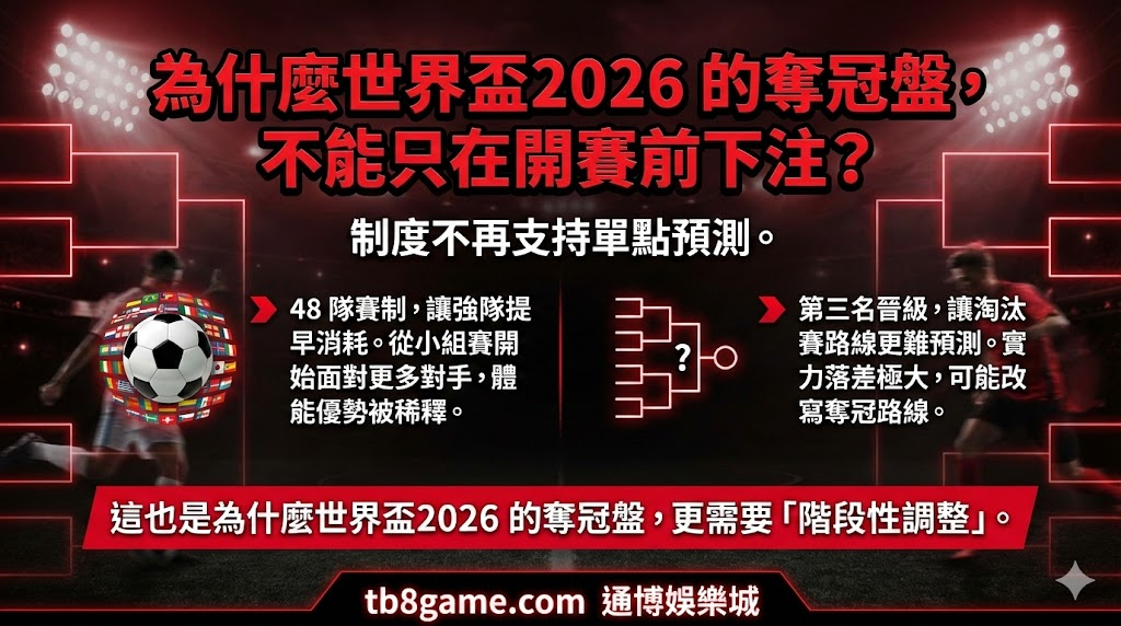 世界盃2026 奪冠盤長期佈局策略|FIFA 新賽制下如何分階段配置與通博娛樂城實戰思維
